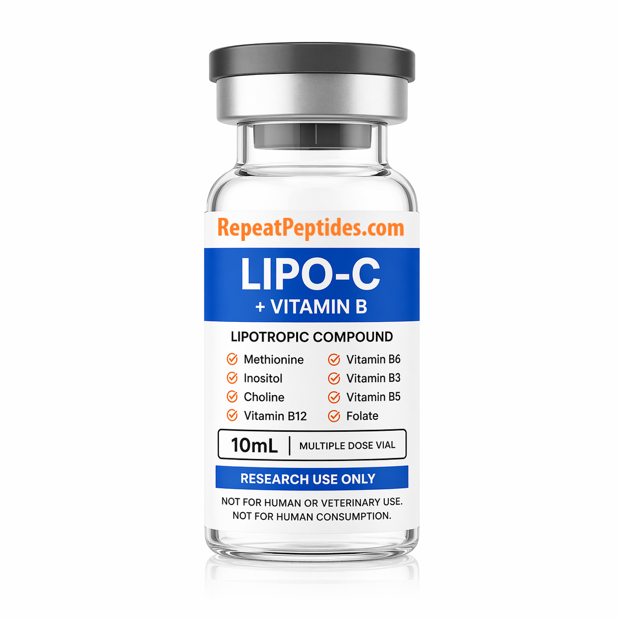 Lipo-C + Vitamin B Complex is a formulated research solution designed for laboratory investigation into lipotropic pathways and cellular metabolic signaling. This compound combines key lipotropic agents with essential B vitamins commonly studied in biochemical and metabolic research environments.